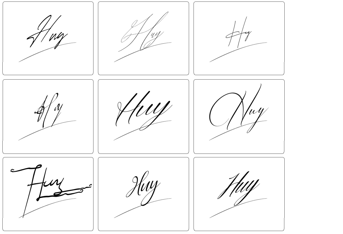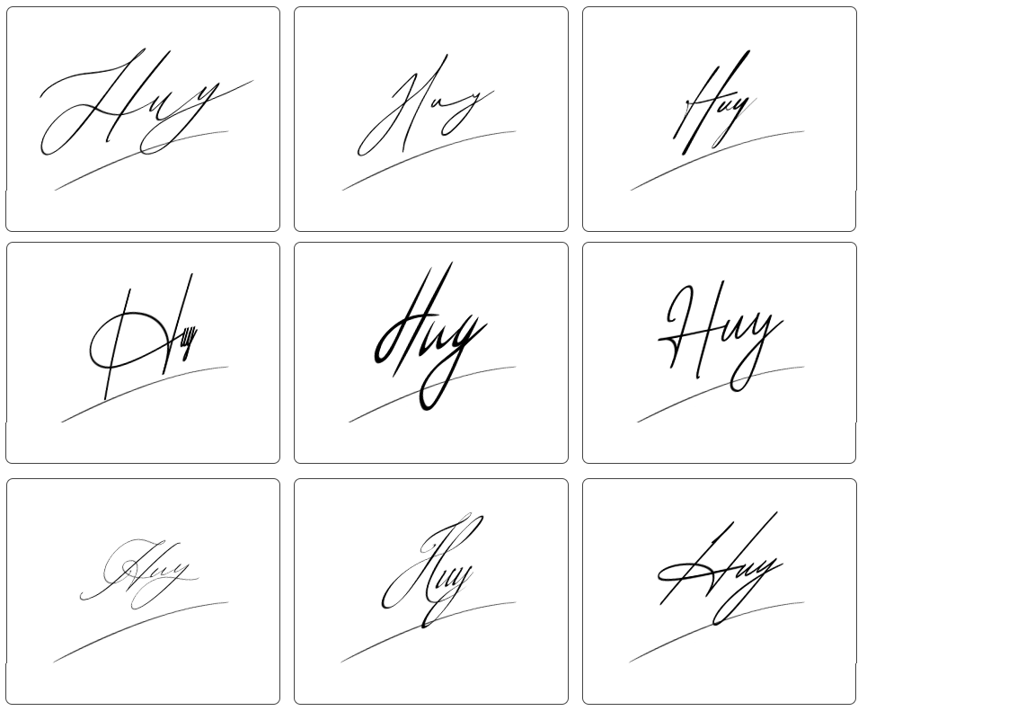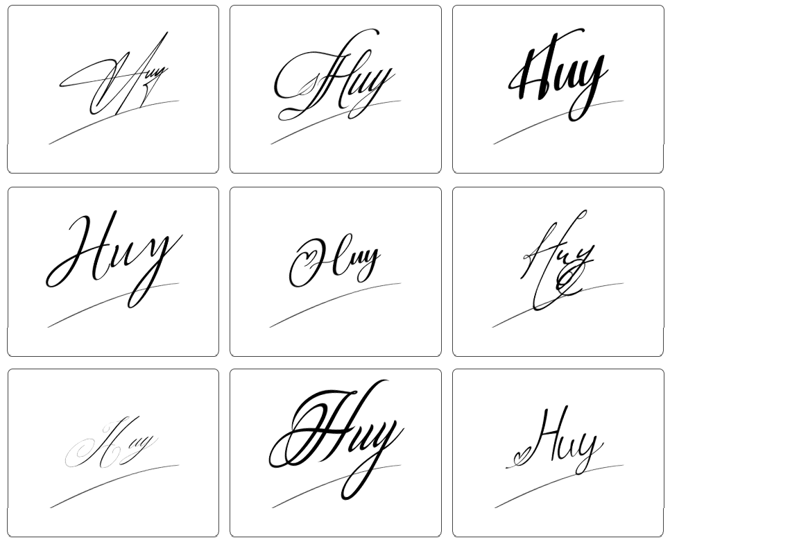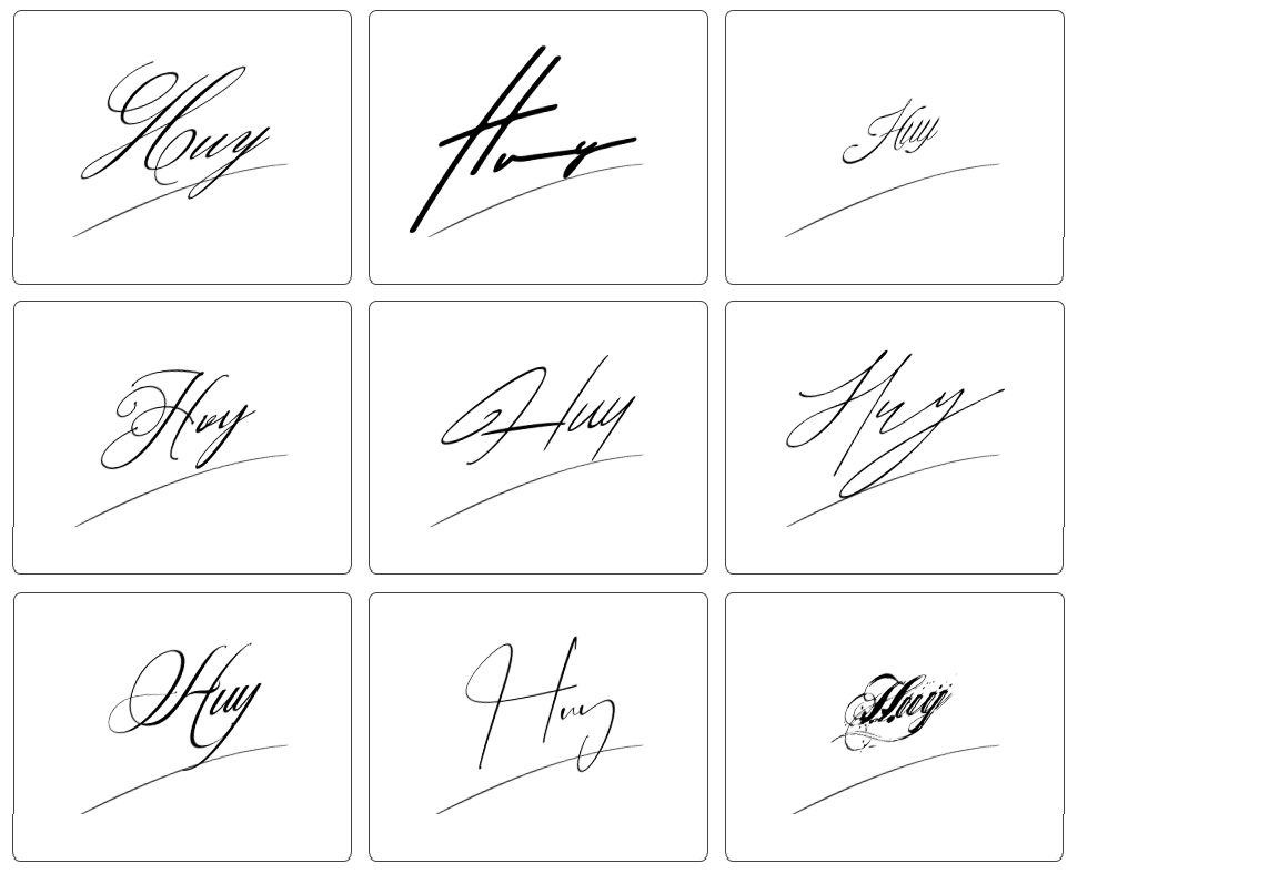 Dưới đây là tổng hợp hơn 100 mẫu chữ ký tên huy đẹp, phù hợp với nhiều sở thích và cá tính khác nhau. Bạn có thể tham khảo các mẫu chữ ký từ đơn giản đến cách điệu, từ nhẹ nhàng đến mạnh mẽ, vô cùng đa dạng để lựa chọn: