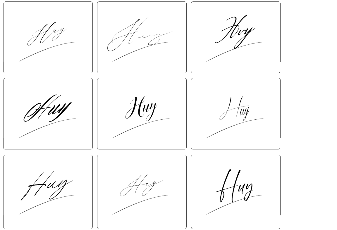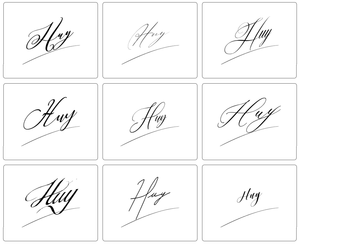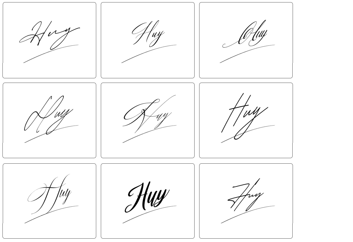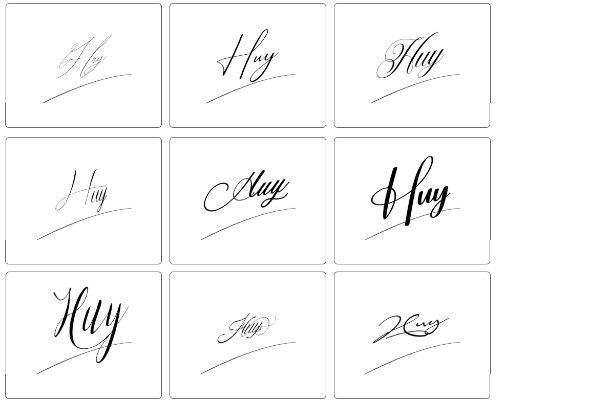 Dưới đây là tổng hợp hơn 100 mẫu chữ ký tên huy đẹp, phù hợp với nhiều sở thích và cá tính khác nhau. Bạn có thể tham khảo các mẫu chữ ký từ đơn giản đến cách điệu, từ nhẹ nhàng đến mạnh mẽ, vô cùng đa dạng để lựa chọn: