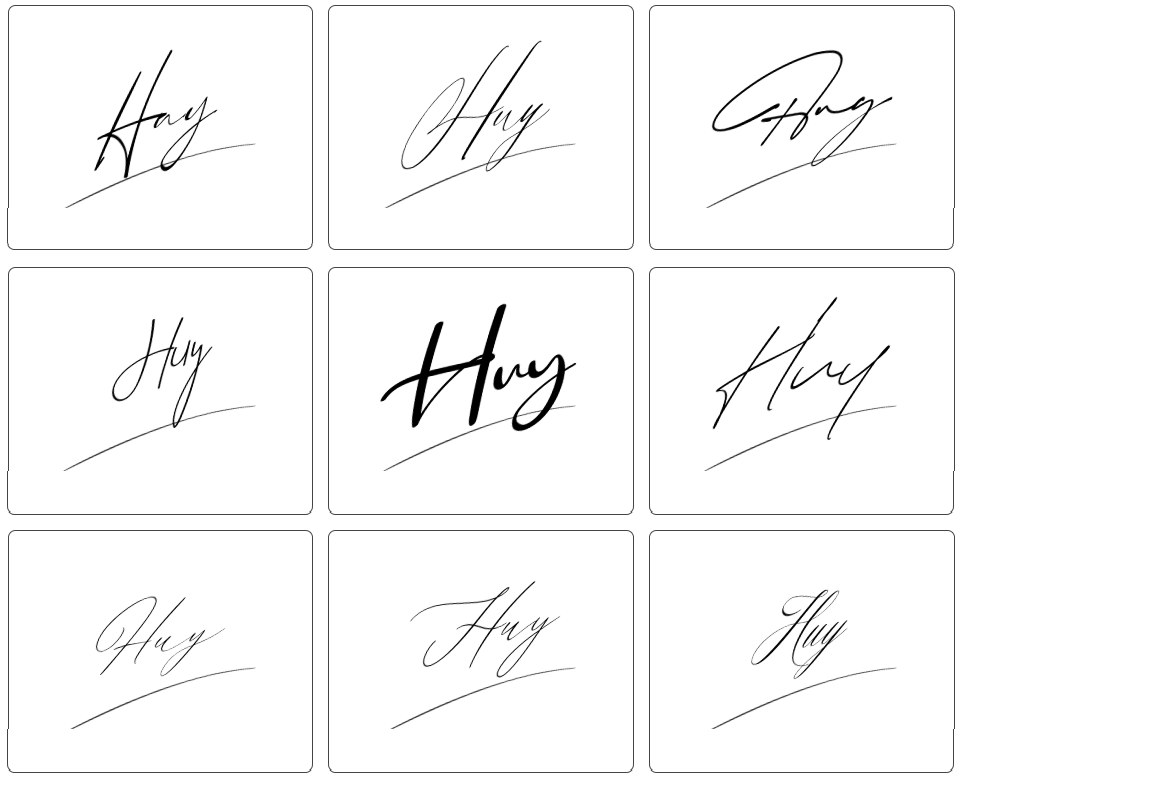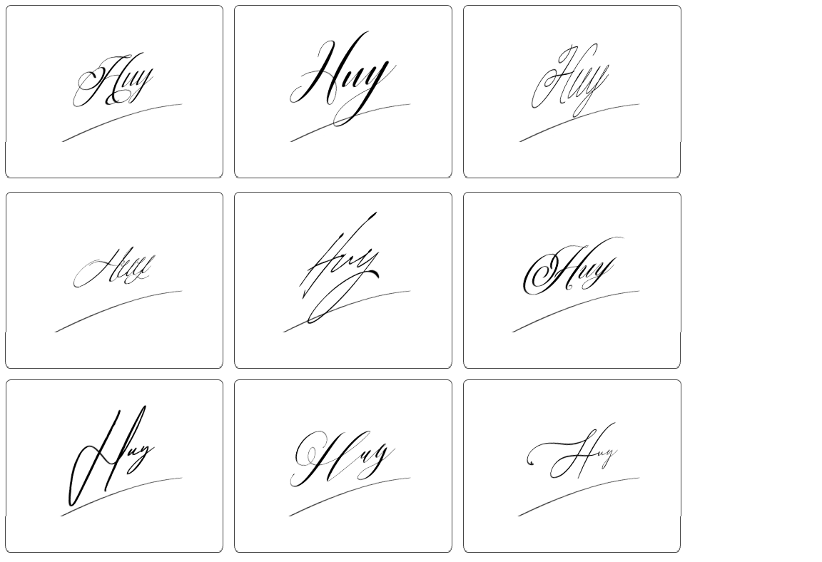 Bạn có thể thử các kiểu chữ ký cơ bản: ký chỉ tên “Huy”, ký kèm họ hoặc lồng họ và tên. Hãy ưu tiên những nét chữ mềm mại, liền mạch giúp chữ ký trở nên cuốn hút và chuyên nghiệp hơn.