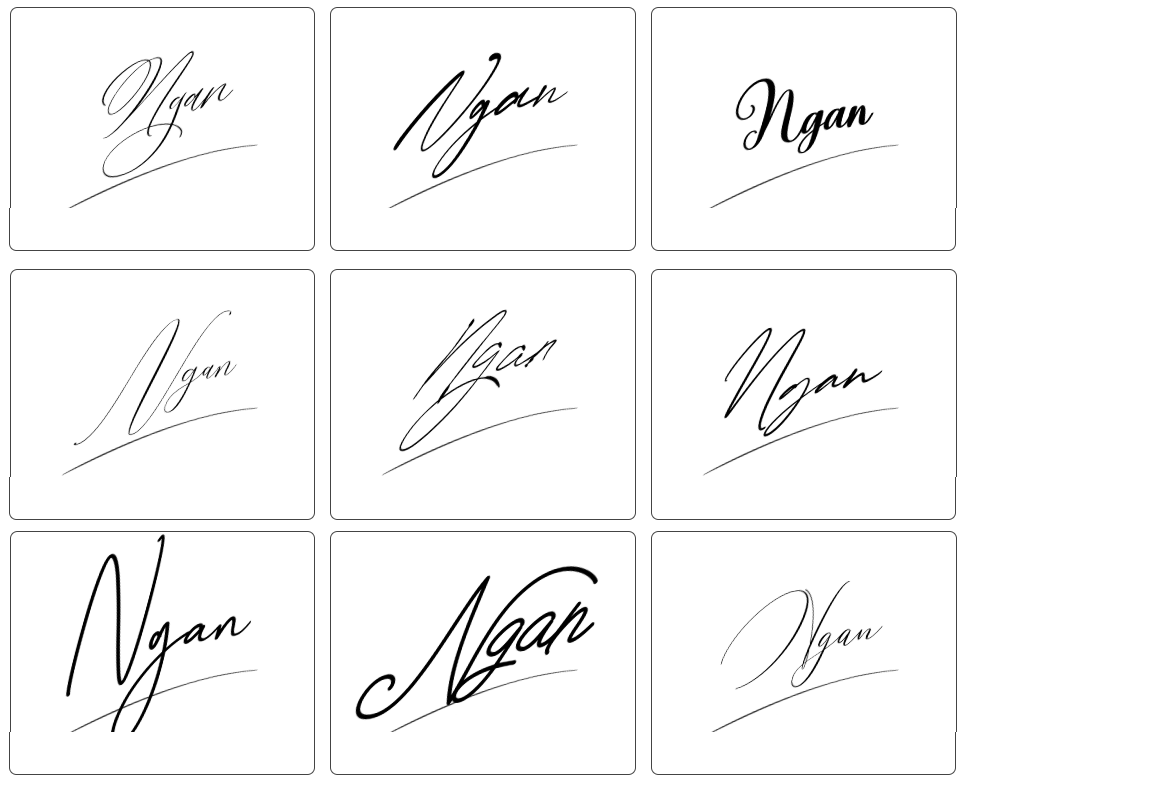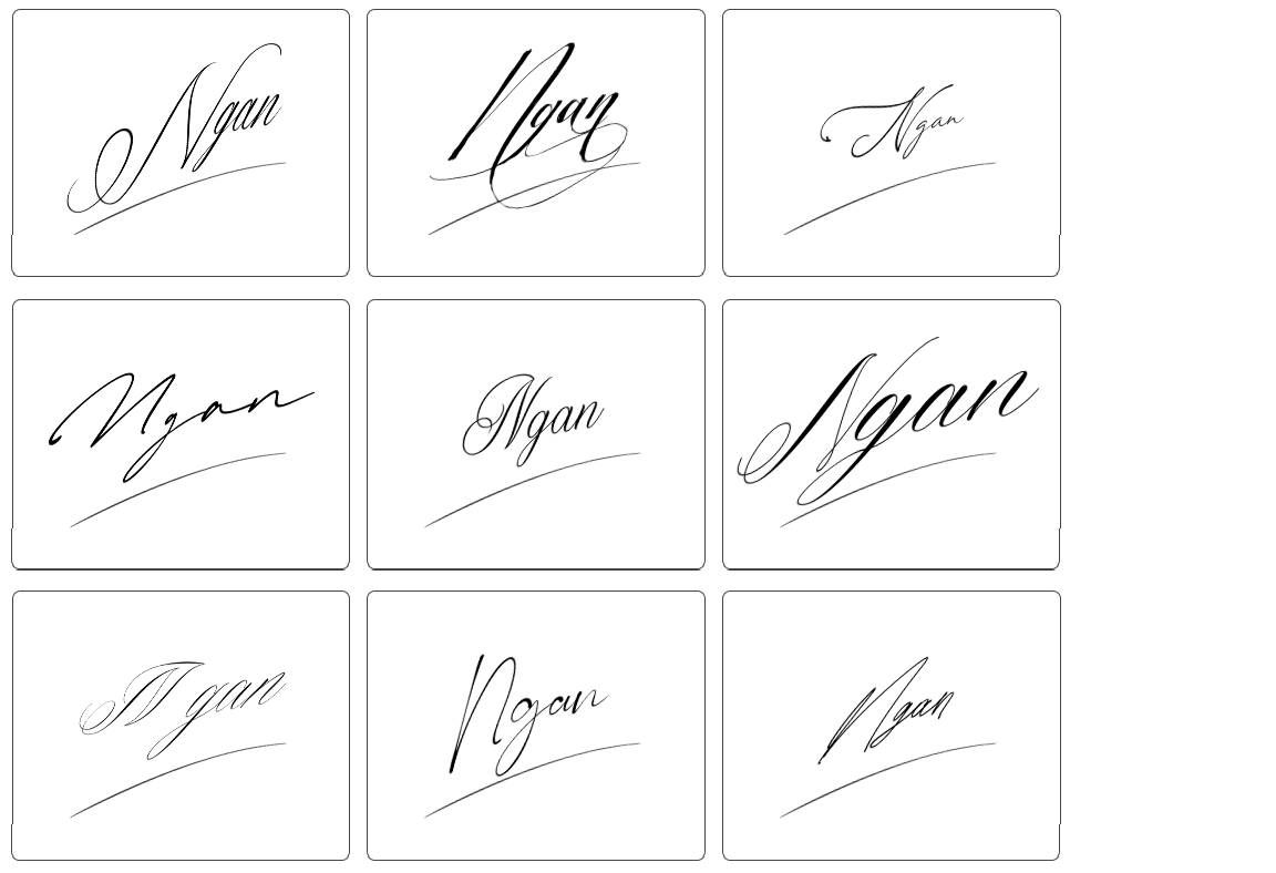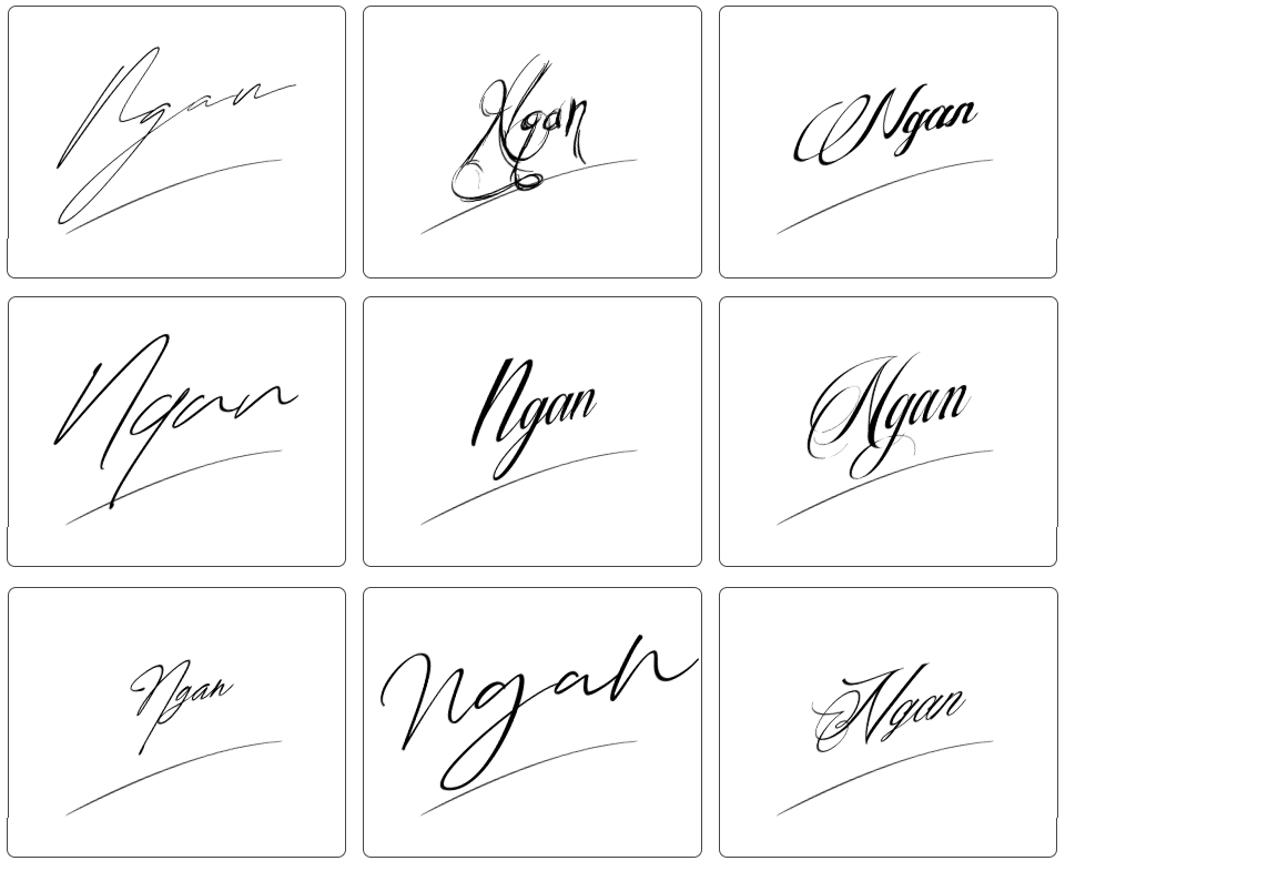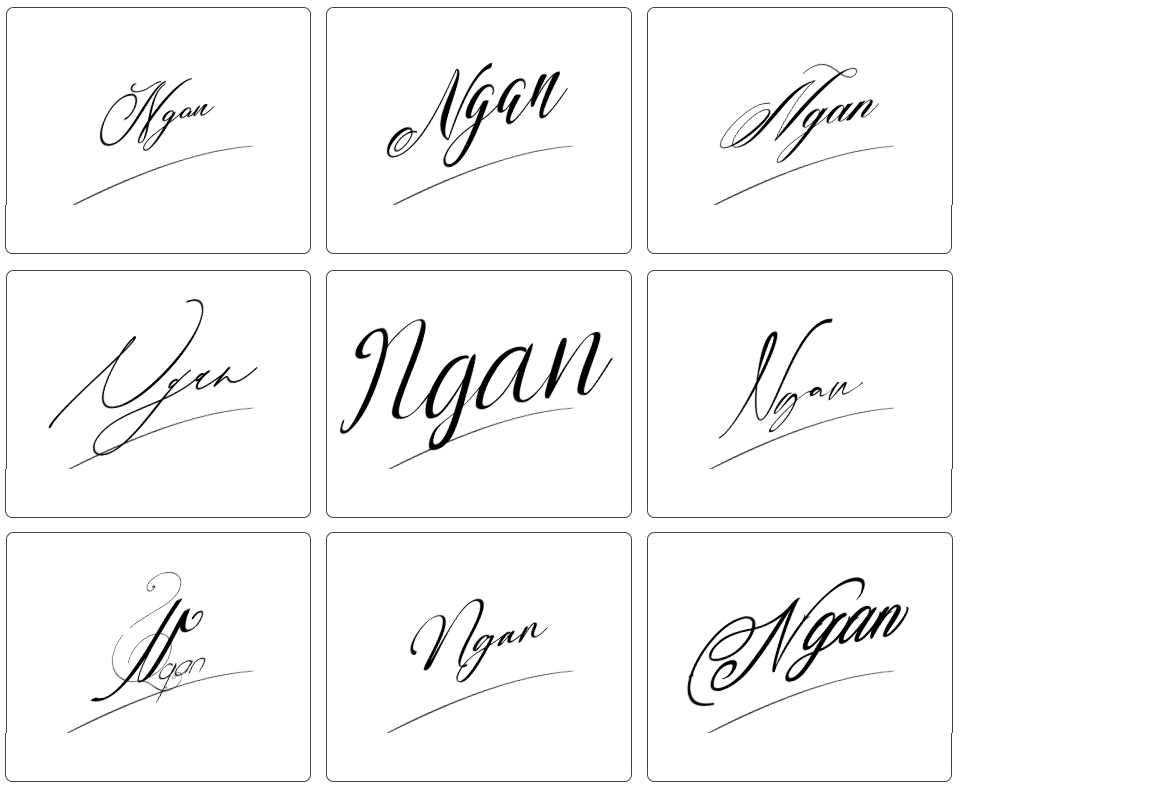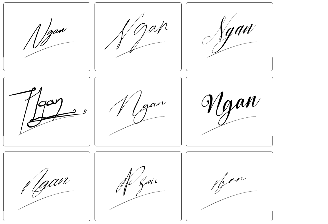 - Bước 5: Ổn định mẫu chữ ký tên Ngân