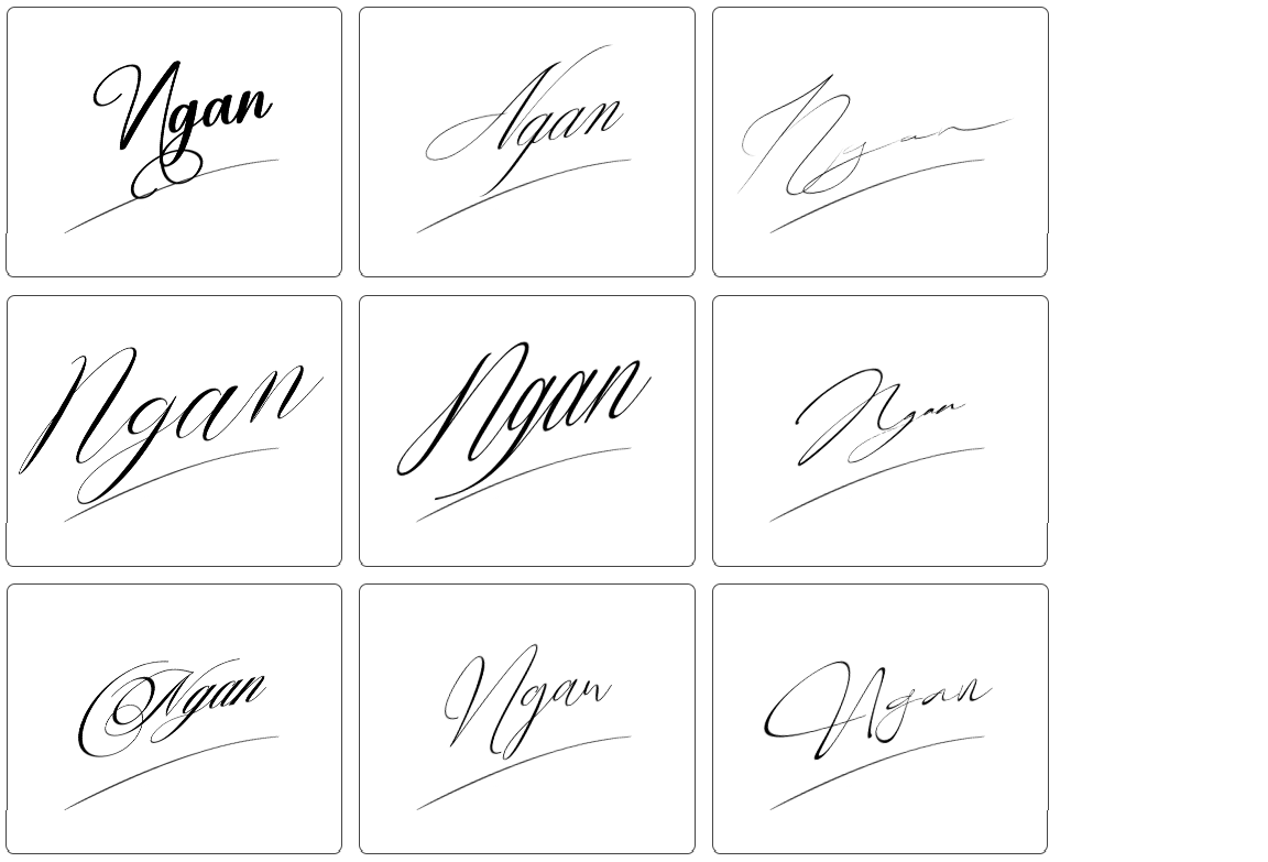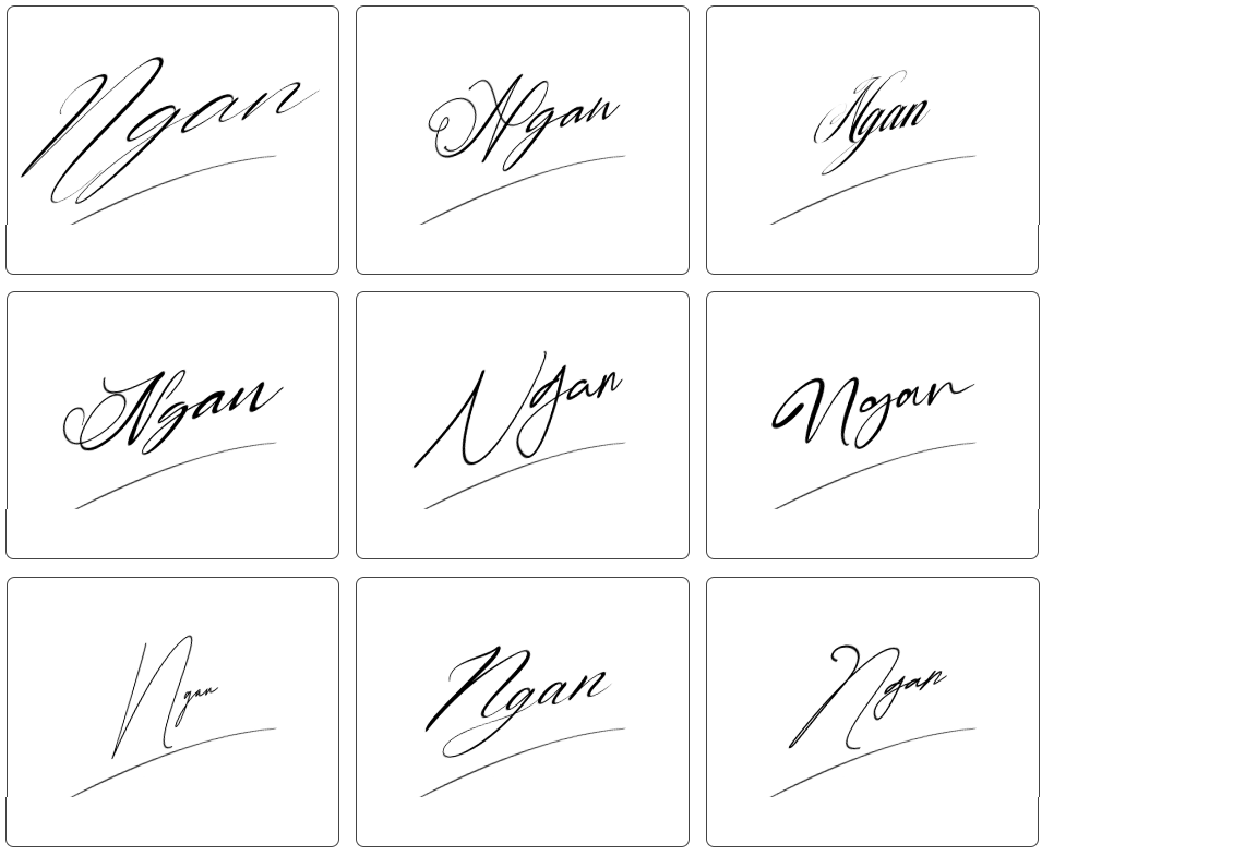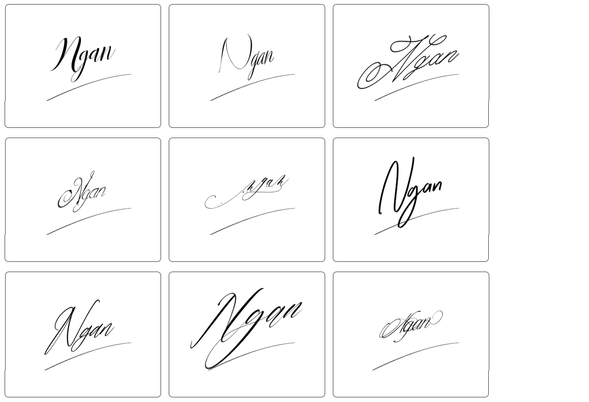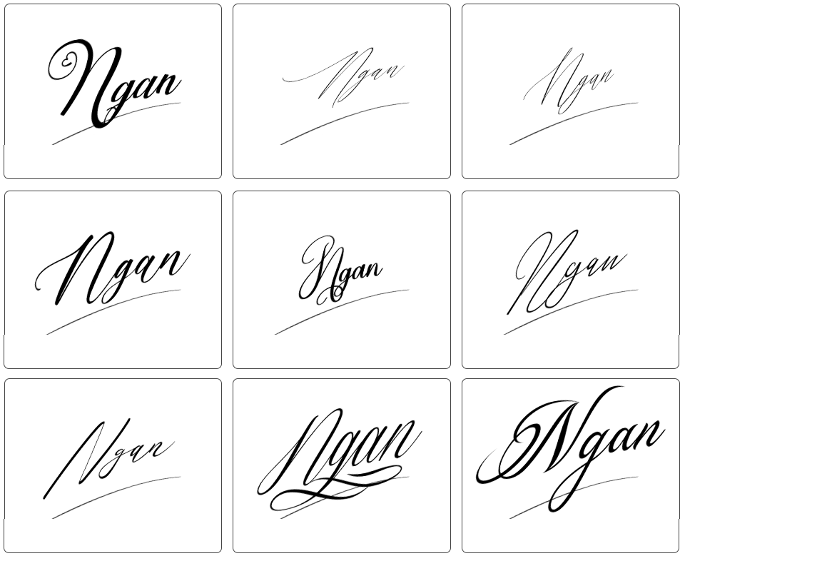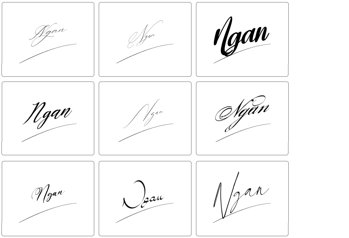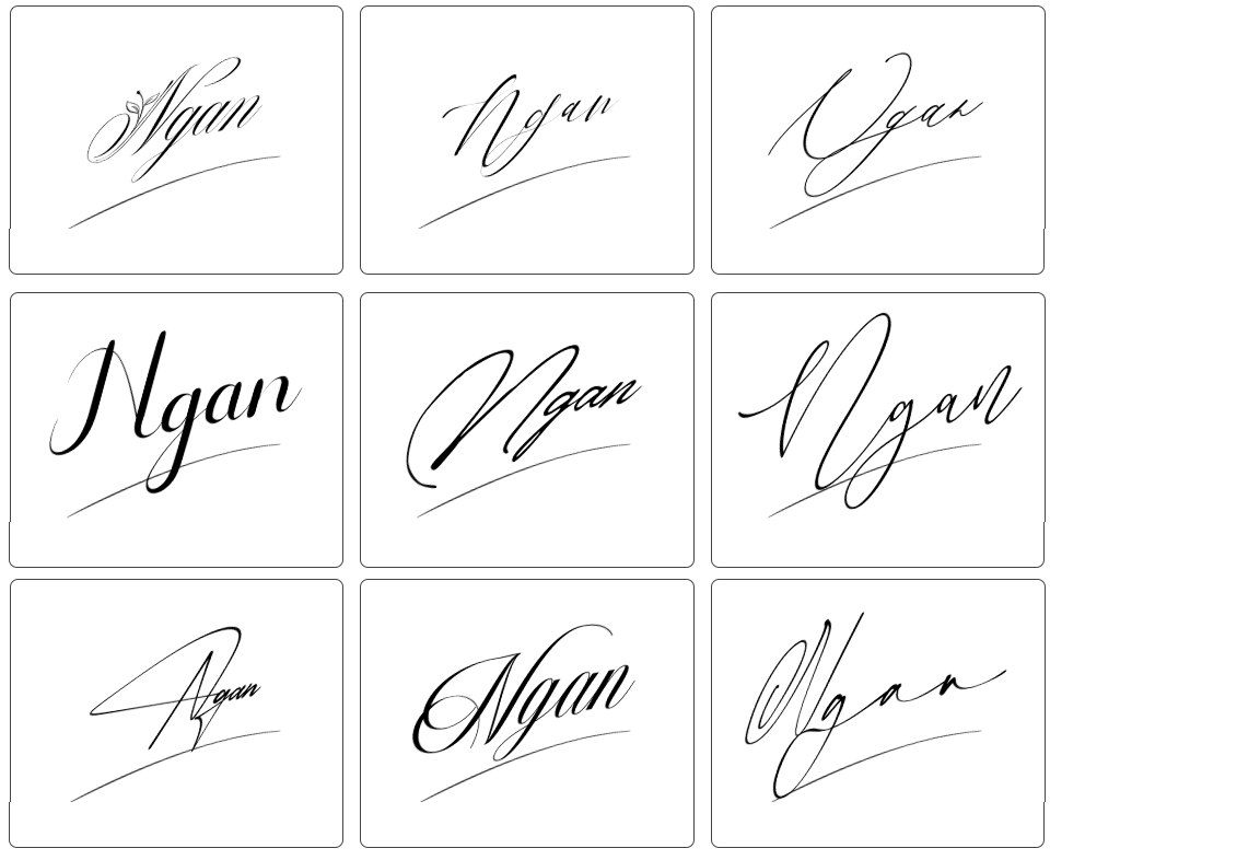 - Bước 5: Ổn định mẫu chữ ký tên Ngân