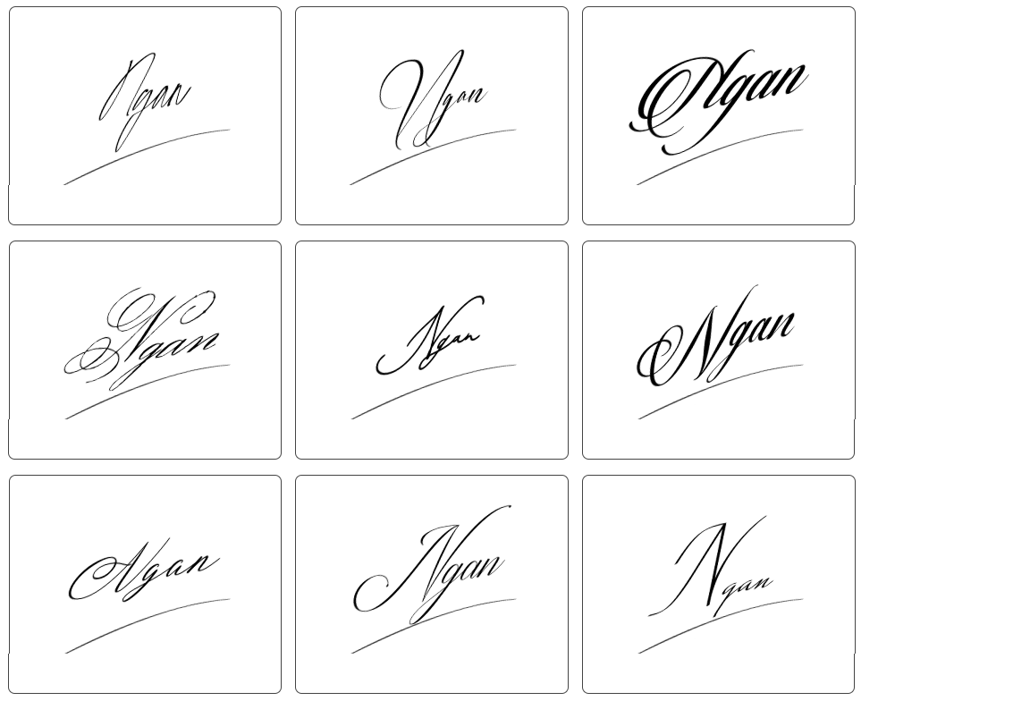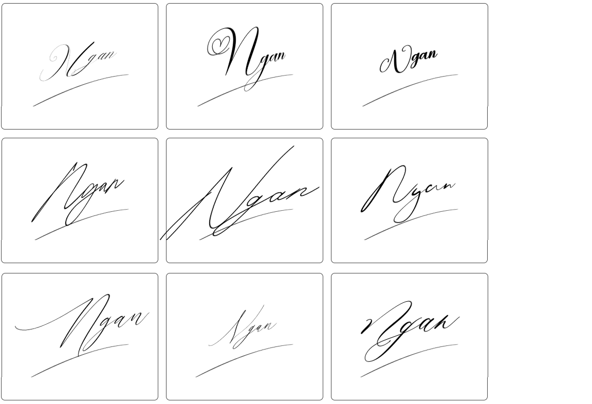 - Bước 1: Tham khảo các mẫu chữ ký tên Ngân đẹp
