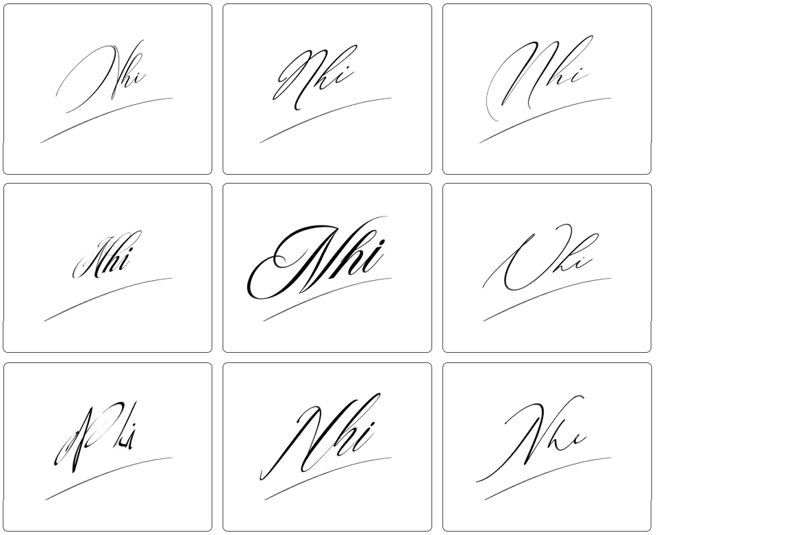 Bạn có thể lựa chọn mẫu chữ ký Nhi phù hợp với tính cách bản thân: từ nét thanh mảnh, bay bổng đến hình khối dứt khoát, mạnh mẽ. Một chữ ký thể hiện đúng con người bạn sẽ dễ dàng tạo thiện cảm với người đối diện, đồng thời tăng thêm sự tự tin trong mỗi lần ký tên.