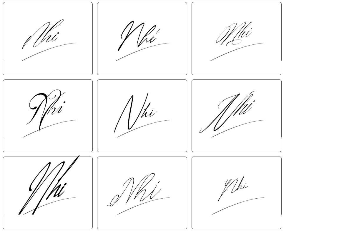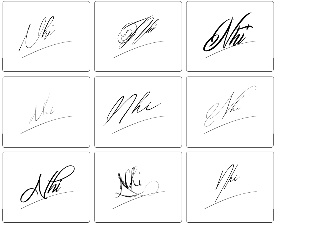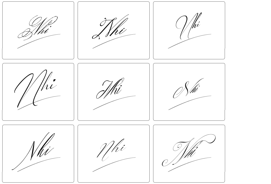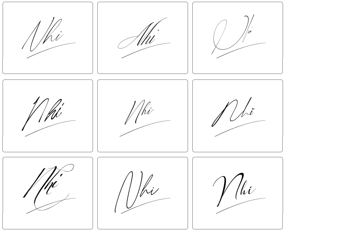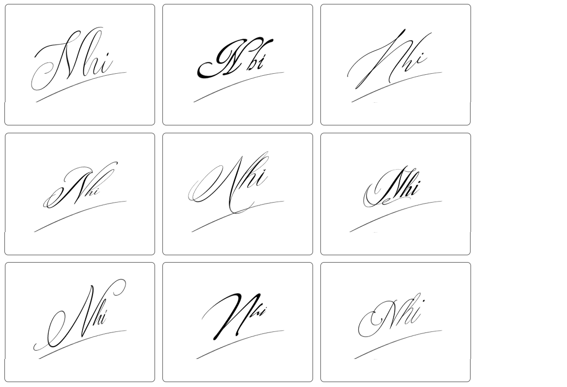 Bạn có thể lựa chọn mẫu chữ ký Nhi phù hợp với tính cách bản thân: từ nét thanh mảnh, bay bổng đến hình khối dứt khoát, mạnh mẽ. Một chữ ký thể hiện đúng con người bạn sẽ dễ dàng tạo thiện cảm với người đối diện, đồng thời tăng thêm sự tự tin trong mỗi lần ký tên.
