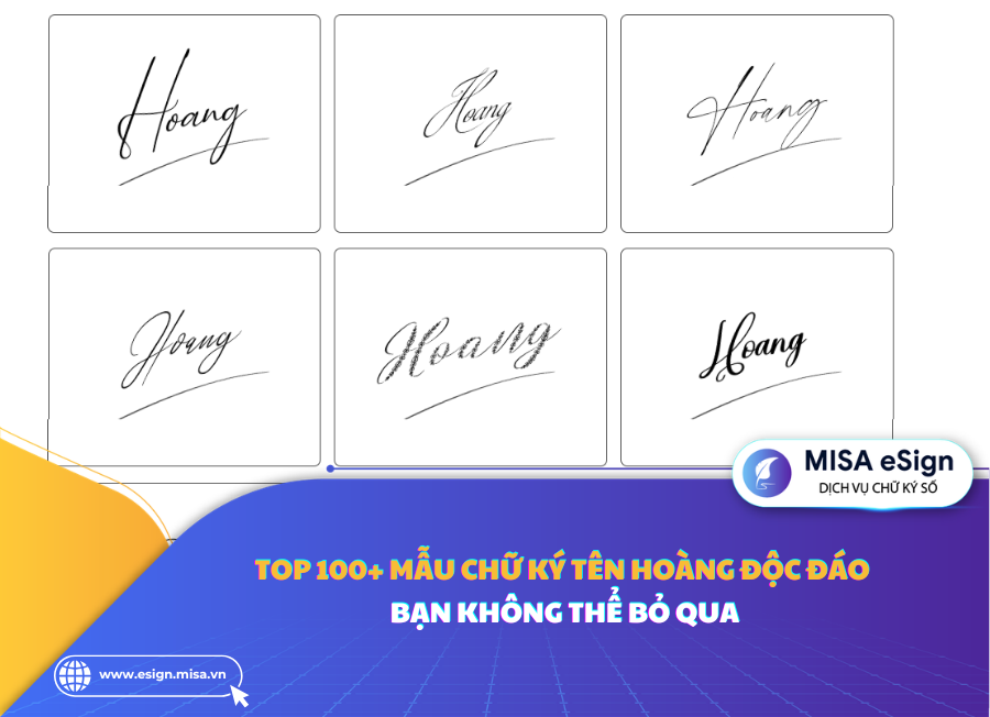 Trong đời sống xã hội và công việc, chữ ký không đơn thuần chỉ là một ký hiệu cá nhân dùng để xác nhận văn bản hay giấy tờ mà còn là đại diện cho cá tính, phong cách và đôi khi là cả vận mệnh của người sở hữu. Nếu bạn tên Hoàng và muốn tìm kiếm một mẫu chữ ký tên Hoàng vừa có tính thẩm mỹ vừa mang lại may mắn, hãy cùng MISA eSign đọc bài viết dưới đây.