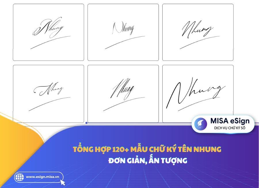 Chữ ký không chỉ là dấu hiệu nhận diện cá nhân mà còn thể hiện phong cách, cá tính và dấu ấn riêng của mỗi người. Khi bạn sở hữu một chữ ký tên Nhung đẹp, bạn đang tạo ra một “thương hiệu cá nhân” mang tính pháp lý và giá trị lâu dài. Bài viết này MISA eSign sẽ giúp bạn hiểu rõ ý nghĩa của chữ ký tên Nhung, yếu tố phong thủy theo ngũ hành, hướng dẫn cách ký ấn tượng và tổng hợp các chữ ký mẫu tên Nhung, mẫu chữ ký Nhung đơn giản để bạn tham khảo.